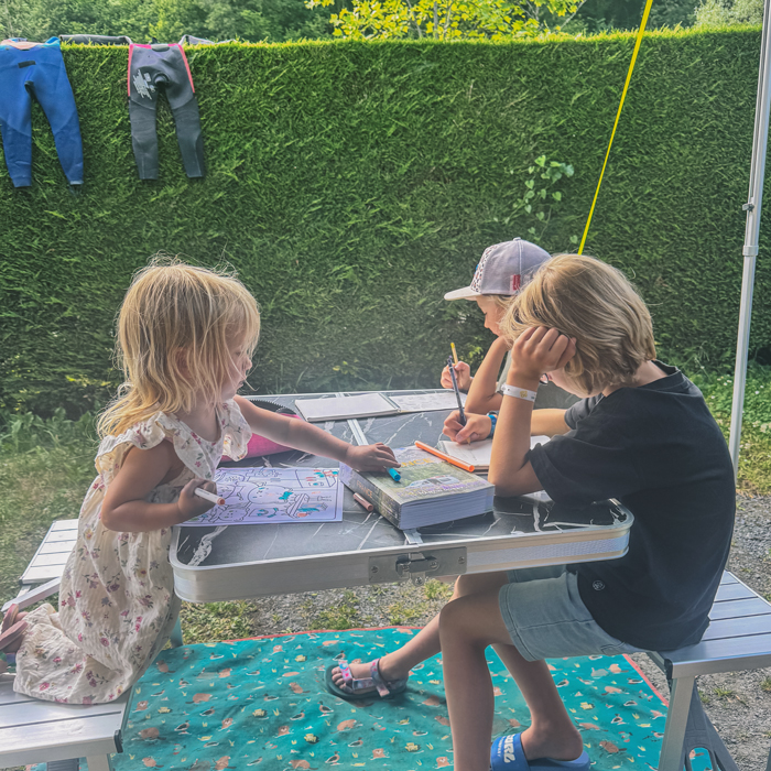 I packed colouring books, a fresh pencil case of pens and pencils, plus a few extras – word searches, country-themed spot-the-difference, and a blank diary so the children could document our trip. These came out almost daily, especially while we were cooking dinner.