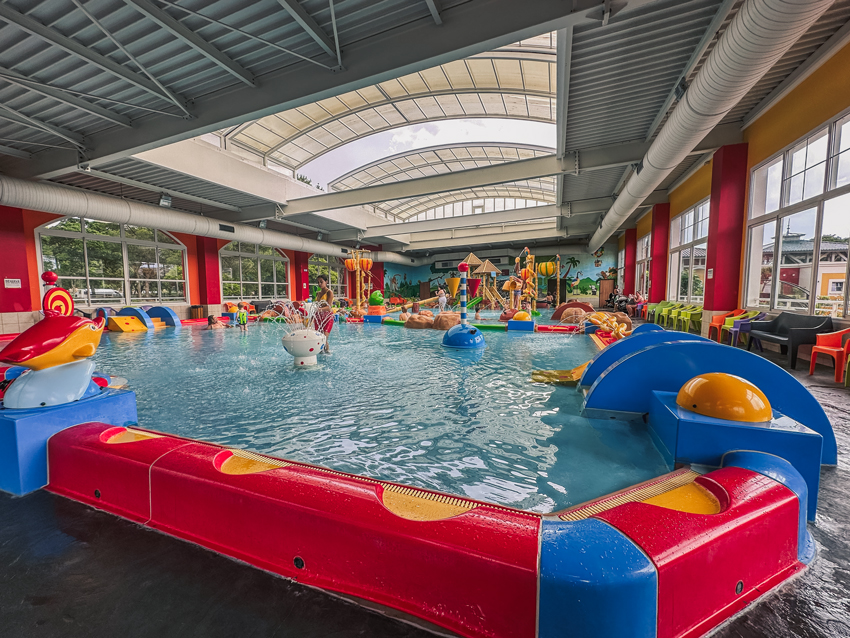 The resort featured a spectacular waterpark: a volcano-themed pool, a lazy river complete with oversized rubber rings, towering slides, and a bright indoor splash zone perfect for Dotty. She surprised us all by being an absolute daredevil, tackling almost every slide.