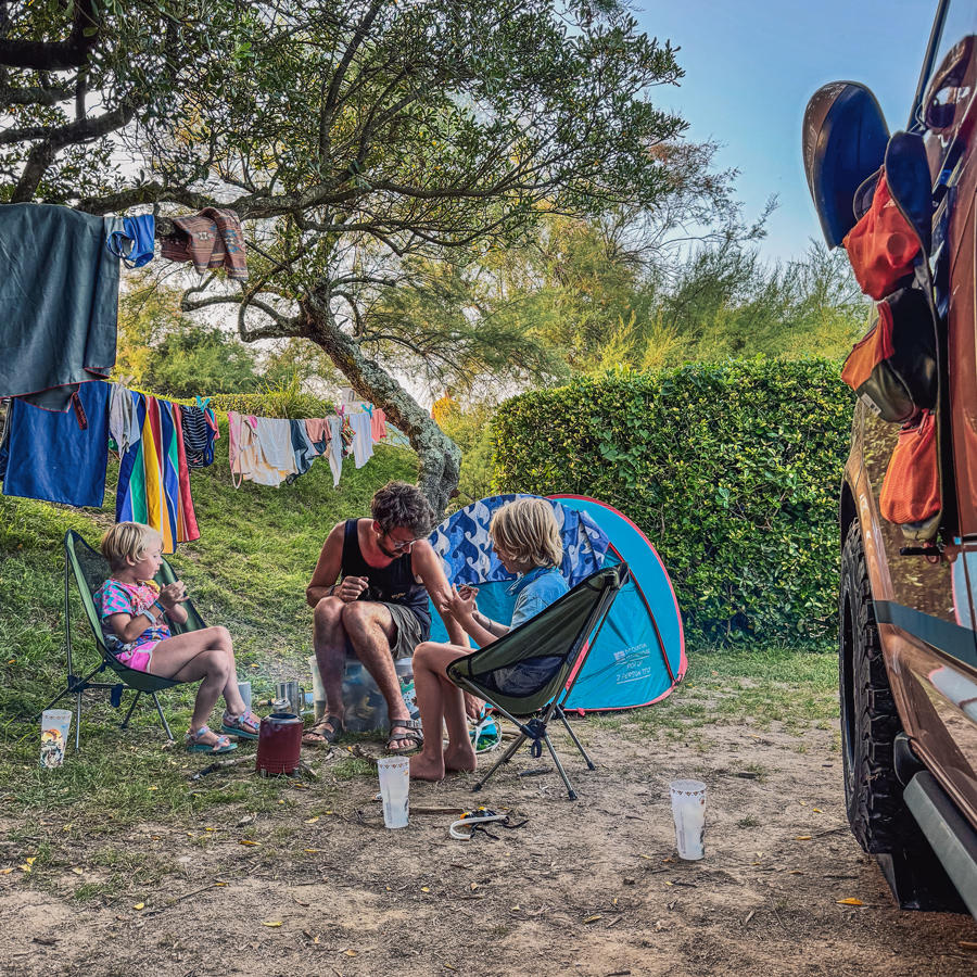 The kids tired quickly, so we didn’t linger long, but we stocked up on veggie bits from a small supermarket and headed back. The rest of the day was spent on the beach and in the van, finished off with a cosy little campfire before bed.