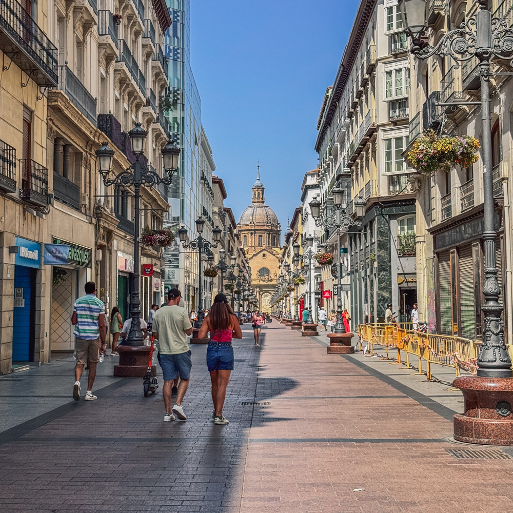 Zaragoza became our halfway stop, primarily chosen because it was marked on the map and had hotels. With the temperature hitting 39°C, camping wasn’t an option. Parking the van was a challenge, but after removing the surfboards, we managed to squeeze into an underground car park.